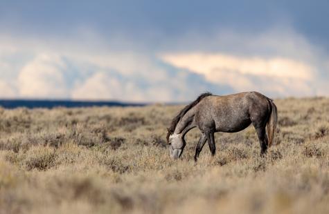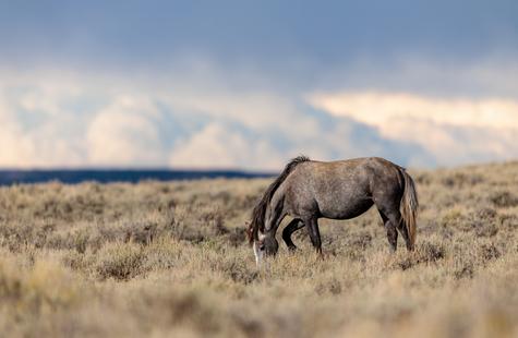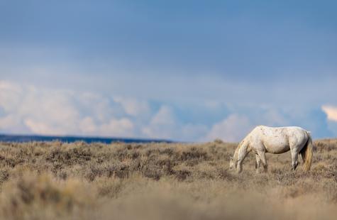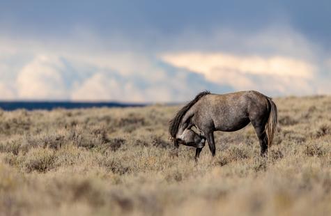In this situation, I had been sitting in a fixed position in the sage brush for over thirty minutes while photographing a group of wild horses that were ~400 feet away. The landscape and light was amazing. The clouds were a spectacular backdrop and I was hoping to frame the horses, landscape and clouds all in one image.