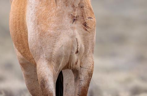 I walked the hundred or so yards to the fence line (away from the larger group of horses that were within the boundary), and almost immediately the pair on the outside began running to me. Their eyes were focused on me, and their expressions suggested desperation and stress.