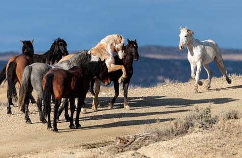 It's so interesting to me when groups of wild horses quickly shift from being calm/quiet to fired up and ready to fight ... and then right back to calmly grazing together again.