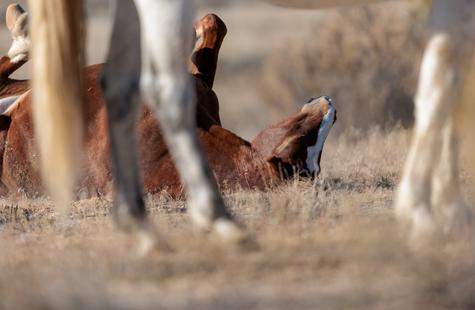 Not long ago, I had my first wild horse approach me and also roll around right next to me, and on this day three would do the same -- one was less than ten feet away. The group started roughly a quarter-mile away, and this is another "no-step" sequence where I remain in a fixed position for every image. No image has been cropped, and all are a fixed length 500mm. I love it when these situations unfold and the horses come directly to greet me.