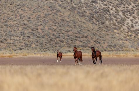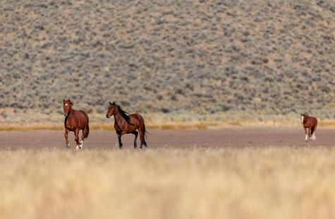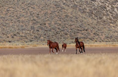 The group was over a mile away from where I had camped, and just like before, I started hiking out their direction. The thick sage and undulating terrain make it easy to remain out of sight, but as I exited the sage and into the dry lake bed, then horses again noticed me.