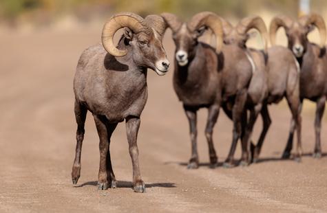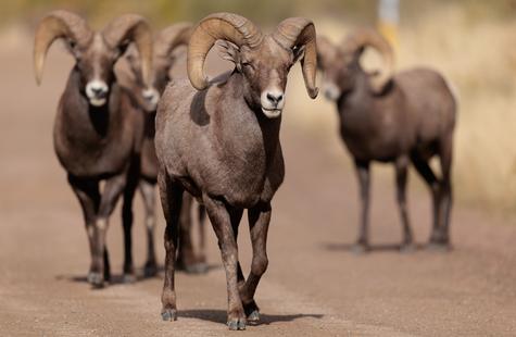 On the way back though, the light steadily improved and eventually I stumbled upon a really nice group of bachelors on the trail. The canyon "trail" is really just a big dirt road that's closed off to cars, and it's a very popular spot for hikers, bikers and runners. The bighorn are accustomed to the locals and the locals are used to the bighorn, so everyone pretty much just goes on about their business when the sheep join the people on the trail-road.
